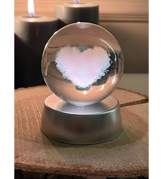 💖 Sonsuz Sevgi Işıltısı: 360 Derece Görünümlü Işıklı Kristal Kalp Küre