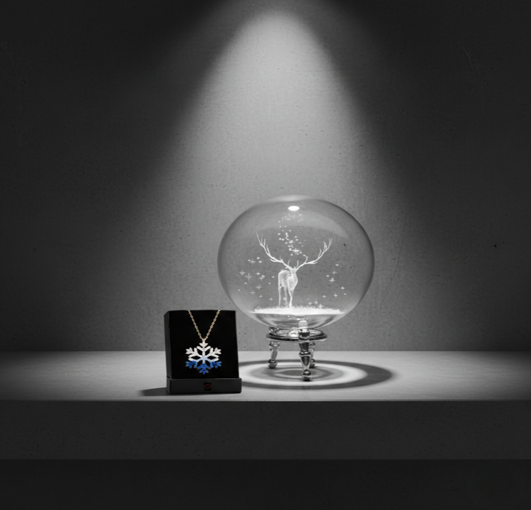 3D Işıklı Galaksi Cam Küre Gece Lambası & Kristal Kar Tanesi Kolye Hediye Seti