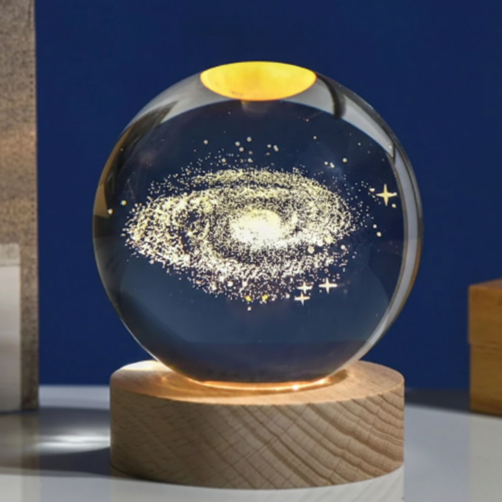 • Büyüleyici 3D Galaksi Detayı: Cam kürenin içerisindeki hassas lazer işleme galaksi figürü, ışık yandığında odanıza sonsuz bir evren havası yayar.