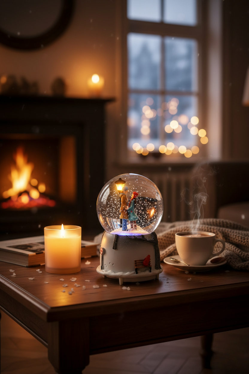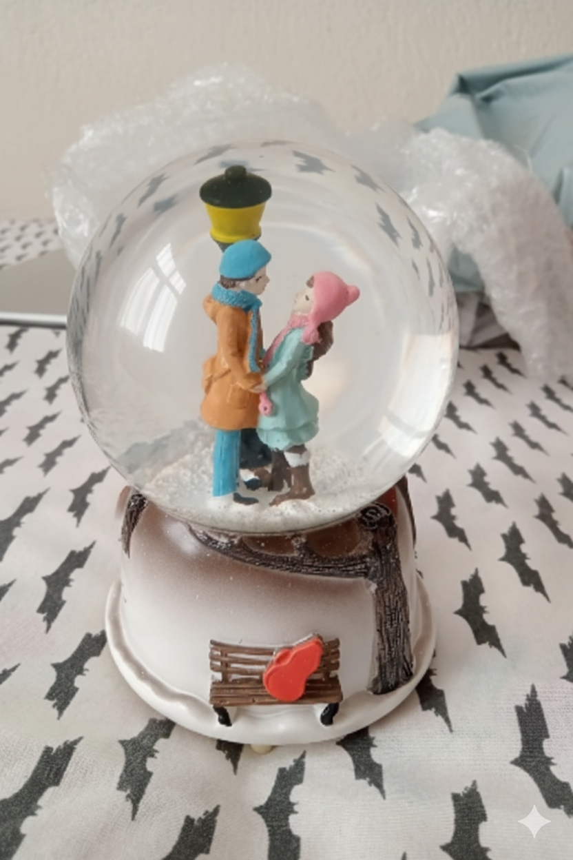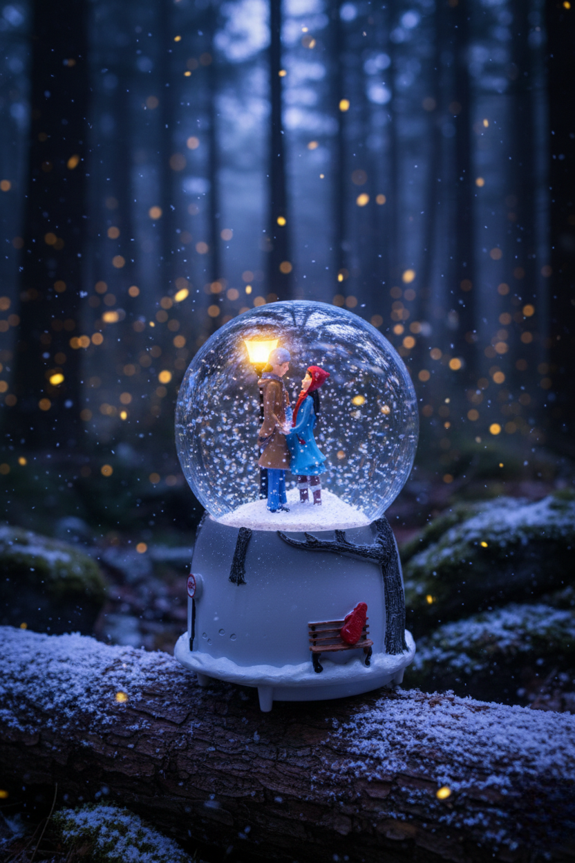 Sıcak bir sokak lambasının altında el ele tutuşan romantik bir çiftin hikayesini taşıyan bu özel kar küresi, sevdiklerinize verebileceğiniz en anlamlı hediyelerden biri. Hem görsel bir şölen sunan hem de huzur veren bu tasarım, her ortama sihirli bir dokunuş katıyor.