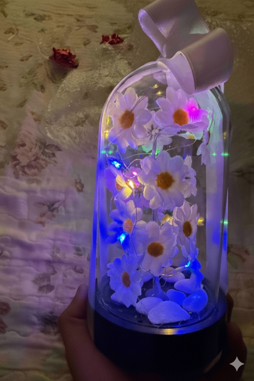 • Büyüleyici Işıklandırma: İçerisindeki entegre ışık sistemi sayesinde gece lambası olarak kullanılabilir, odanıza yumuşak ve romantik bir aydınlatma sağlar.