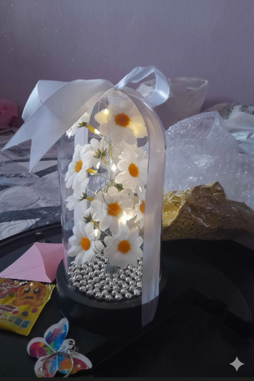 ışığına ve solmayan çiçek uyumu gayet şık beğendim