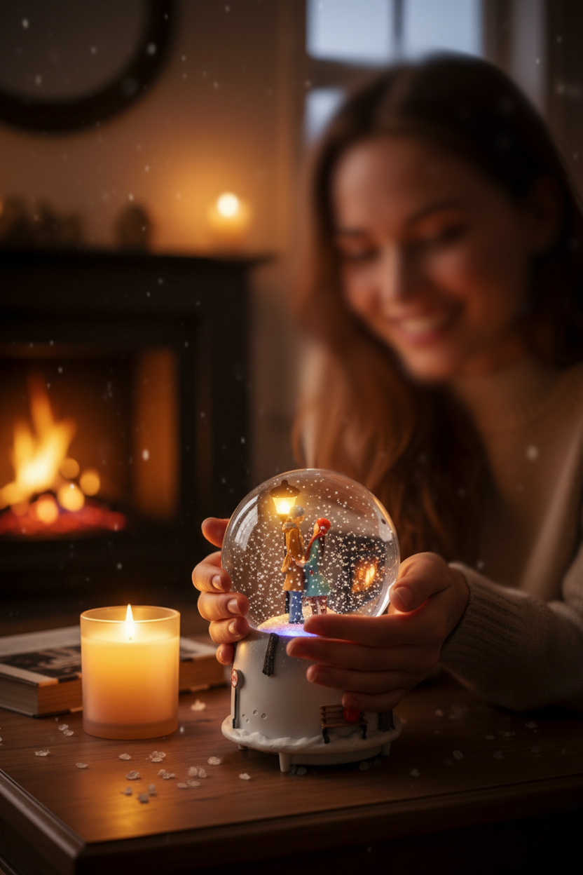 • Kış Masalı Etkisi: Salladığınızda uçuşan kar taneleri, cam kürenin içindeki masalsı dünyayı canlandırır.